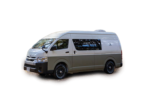 HIACE is a simple camping van. HIACE made by a passionate Japanese carpenter.It is perfect for couples who want to go on a long trip while sleeping in the car or a tent at night. Because it is not a proper campervan, the cost is set cheaply.