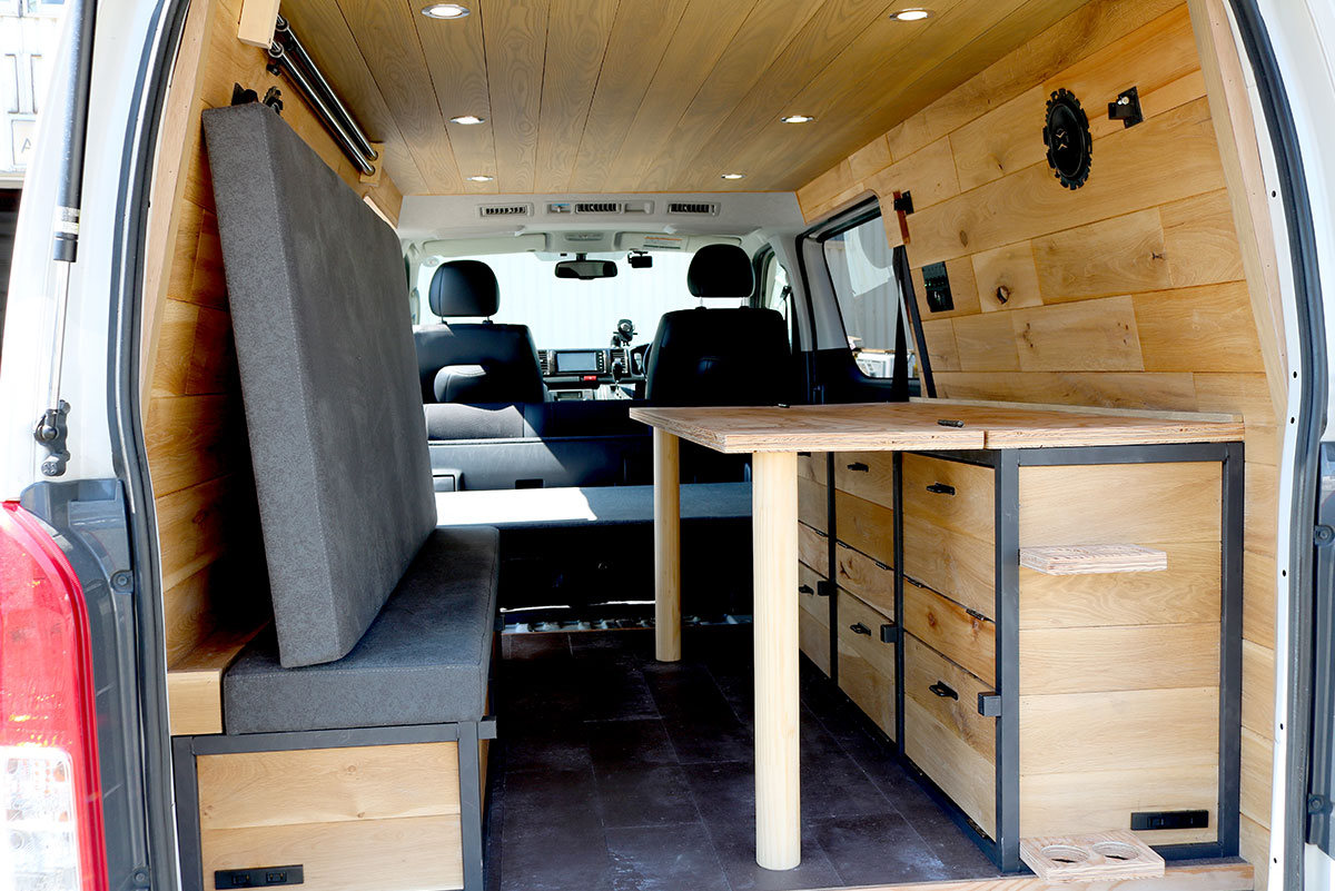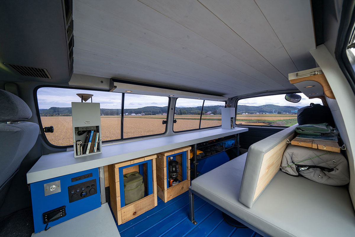 HIACE is a simple camping van. HIACE made by a passionate Japanese carpenter. It is perfect for couples who want to go on a long trip while sleeping in the car or a tent at night. Because it is not a proper campervan, the cost is set cheaply.